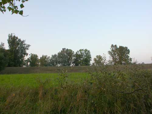 Das Gebiet an der Weichsel, in dem der Friedhof liegen sollte. Im Hintergrund: der Deich.