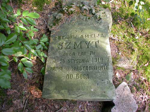 Inschrift: S.P. | z Bysiów Amelia | Szmyt | zyla lat 74 | zm. 25. Stycznia 1918 R. | Prosi o wostchnienie | do Boga